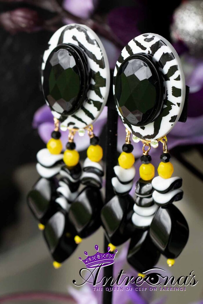 These radiant bright “yellow, black, white” Antreina designer earrings are unequivocally SUNSHINE ๐ on a cloudy โ ๏ธ day as the “Temptations” would say back in the day… Wow! Yes, these designer earrings ๐ are (unique, fashion forward, mesmerizing) on! I love them BIG TIME forevermore! ๐